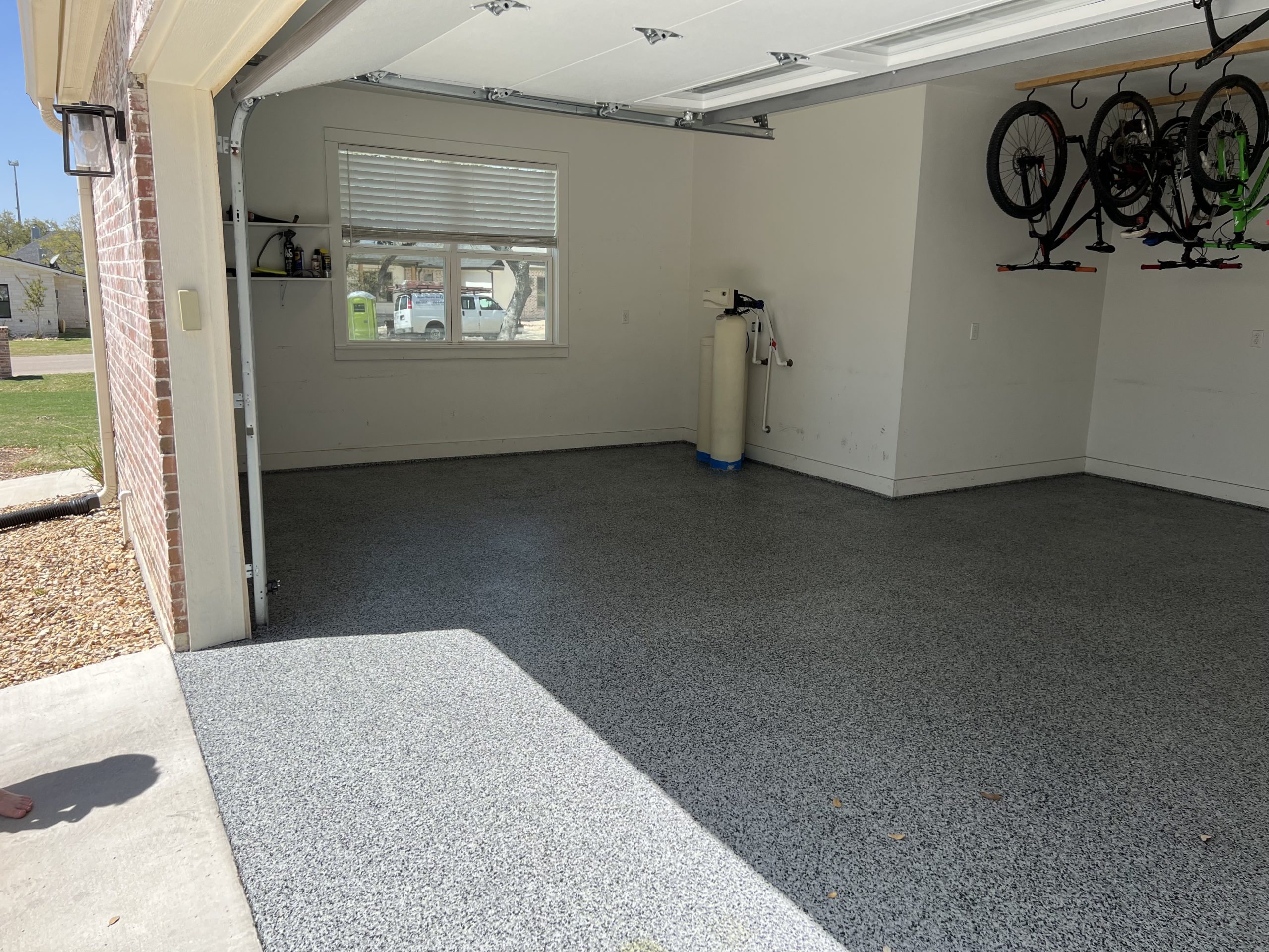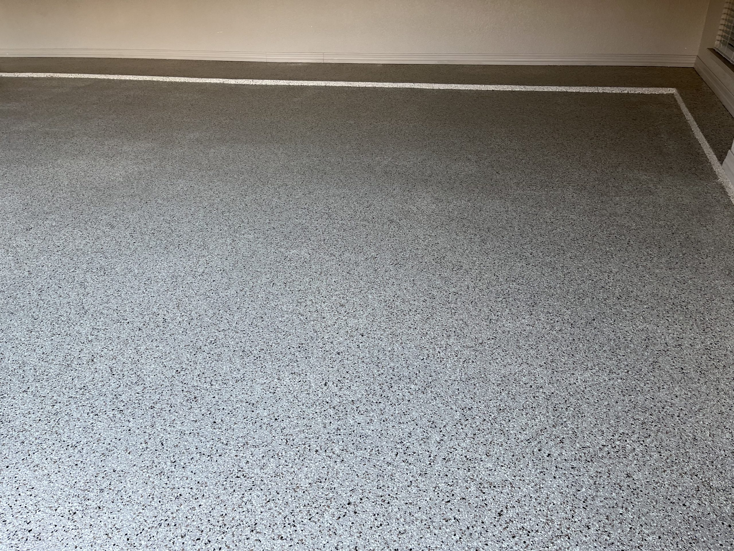 We again only use the best flakes covering the epoxy 100% for a full broadcast custom look selected by our clients.